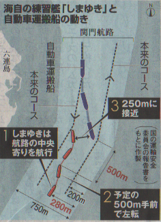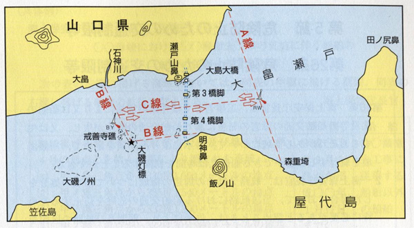 来島海峡の航法で順中逆西の規定により神戸方面に向かう船舶は中水道を航行し下関方面へ向かう船舶は西水道航路を航行しなければならない。 報道では現況の詳細な記事はないので各船どのように航行していたかは不明です。 1万トンの日本人の船長ならここの航法を間違えるはずはないので、西水道を航行していて衝突したものと思われる。 西水道は屈曲しているので少し見通しが悪い場所です。 相手船が外国人(韓国人)なら航法を間違えて西水道へ連れ潮で進入してくるのは大いにあることです。 日本船が相手船が中水道を航行するものとして急に右に舵を切って西水道に突っ込んできた場合には避けるチャンスが少ないものになる。 おまけに連れ潮で航行してきた相手船は舵効きが悪くなる傾向があります。
