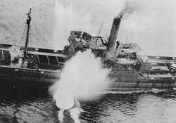 イギリス商船は湾の入り口でコンボイ(船団)を組み軍艦に守られて航行し