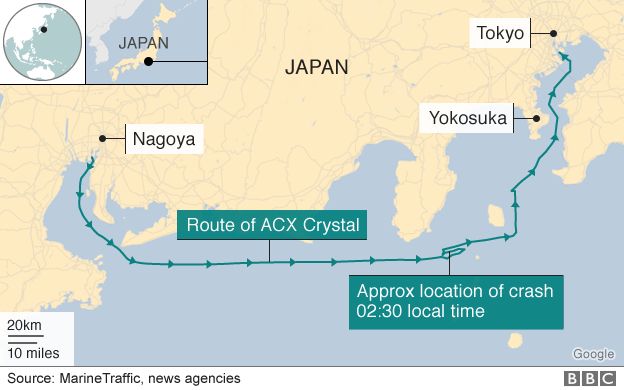 米海軍艦艇フィッツエジェラルド と 日本郵船運航コンテナ船ACXクリスタルの衝突