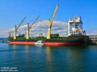 ボートを積んできたコンテナ船・総トン数53453トン