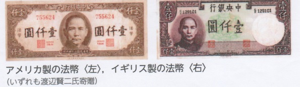 しかし、重慶政権も巨大な軍備を調達するため、奉幣の印刷を増大させ、1937年(昭和12年)の発行額14億元が44年には1894億元になり、日本が発行した偽札は1%の45億元に過ぎず、殆ど何の影響も与えなかったが、37年の各種の物価指数100に対し、44年には5700と凄まじいインフレを招き、中国民衆を大いに苦しめた。
