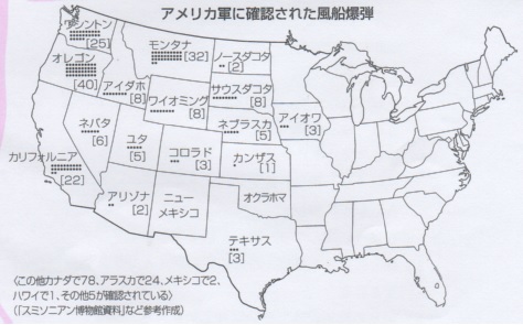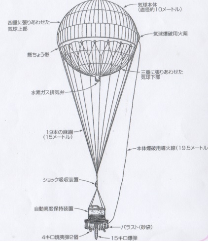 最初の風船爆弾は、昭和19年11月3日明治節を期して、千葉県一宮・茨城県大津・福島県勿来から一斉に放たれた。それぞれに15キロの爆弾と、数個の焼夷弾を搭載し、翌年の4月までに9300個が放球された。アメリカ本土到着が確認されたのは361個だが、おそらく1000個程度が到達したと推定される。その被害はアメリカ本土は勿論アラスカ・カナダさらにメキシコに及び、至る所で原因不明の火災が起こり、20年3月ワシントン州ハンフォード工場につながる送電線に風船爆弾が接触して断線事故となり、マンハッタン計画の研究用原子炉を一時停止させた、アメリカ当局はパニックをおそれてこの情報を公開しなかった。
