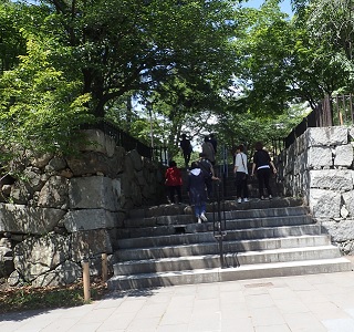 ケ-ブルカ-やリフトが山頂の天守まで整備されている。スキ-気分でそれに乗りました。ふもとにあった2の丸3の丸からの登り道もあり、今から思えば帰りはそれを利用すればよかったように思います。