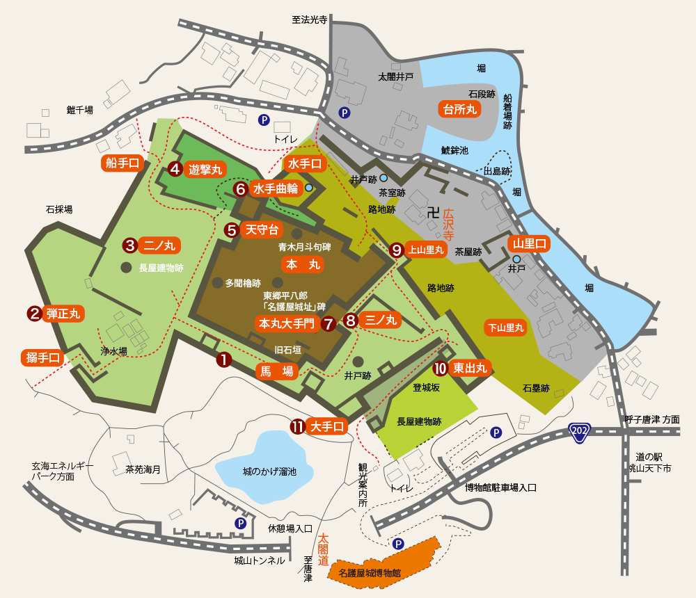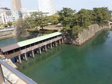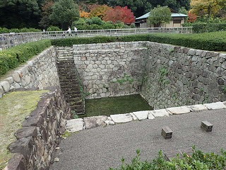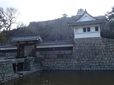 堀には海水が引き込まれ場内に軍船が出入りできるようになっていた。 現在でも鯛などが堀で泳いでいるのが見られる。