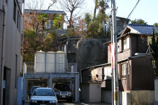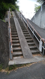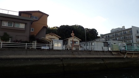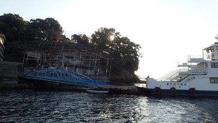 休止していたフェリ-乗場があり、そこを降りると尾道水道がわの城斜面が見える。