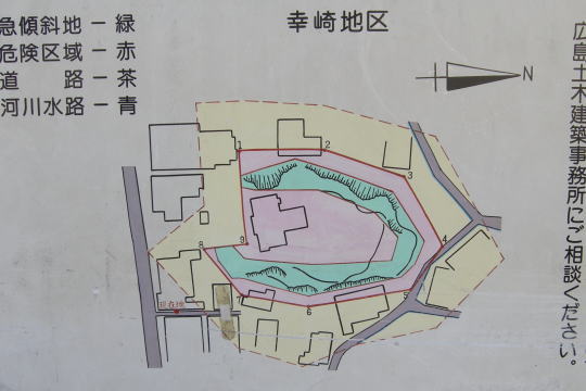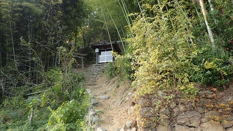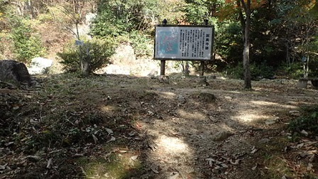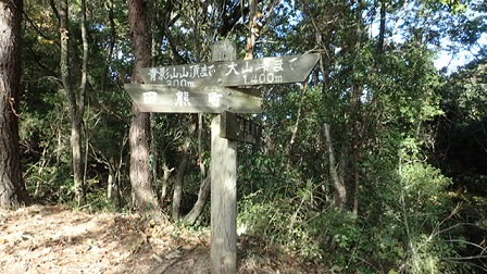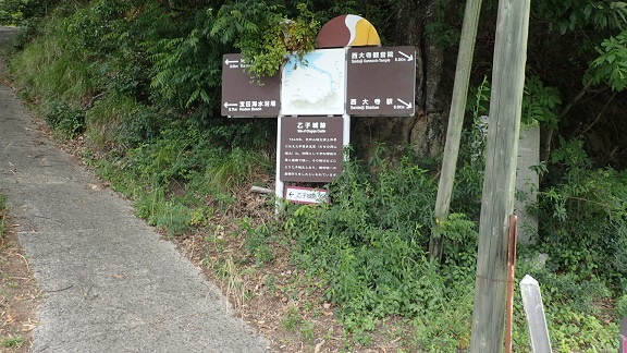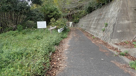 タクシ-を下りてからは舗装された山道を登っていく。ため池のあるところに手作りの案内板がありため池横を登ることになる。途中で行政の案内板があった。かっては整備されていたのであろう。 タクシ-でため池あたりまで行けるので、乗れれば楽です。