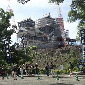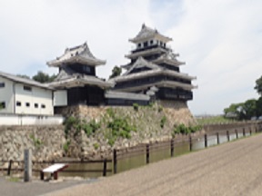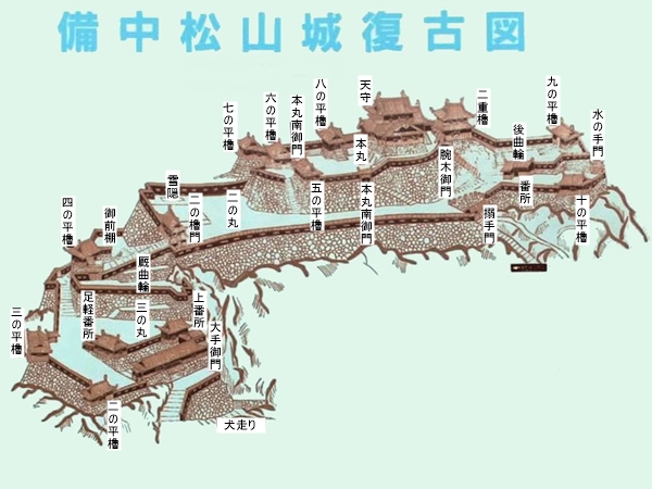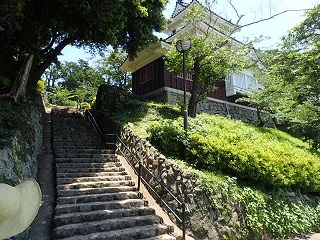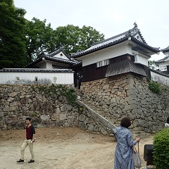 賤ヶ岳の七本槍のひとり加藤嘉明が関ケ原の戦いで戦功をあげ松山城を築城した。連立式の天守であるが、昭和も初期に子天守が消失が消失して、木造で復元された。 門・櫓なども良く残っており防備のための工夫もうかがわれる。