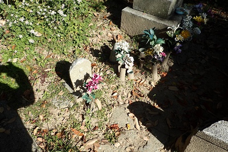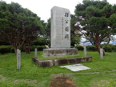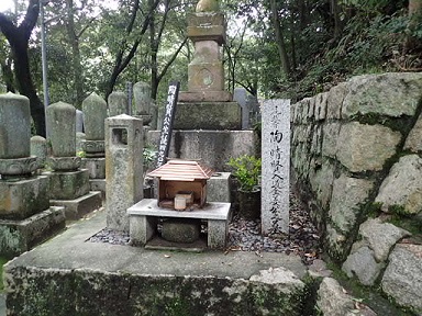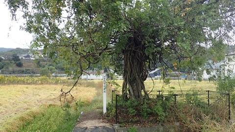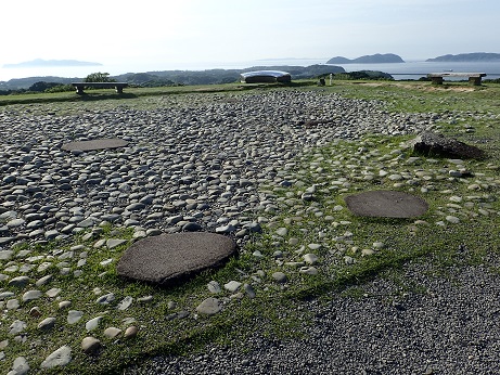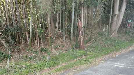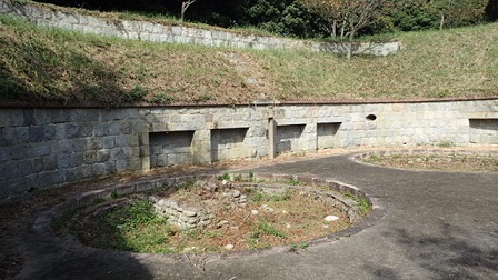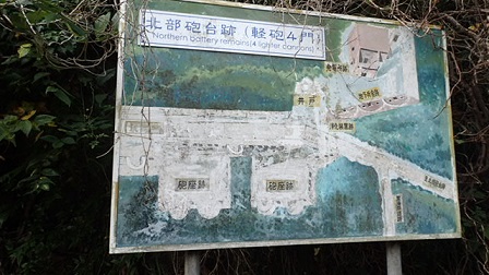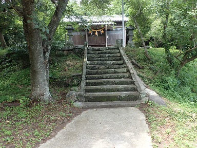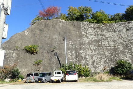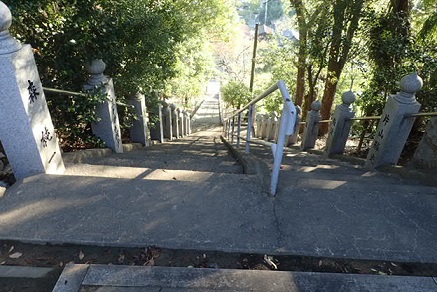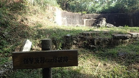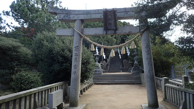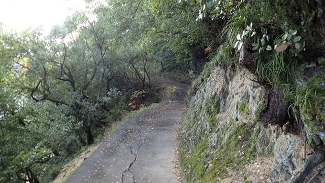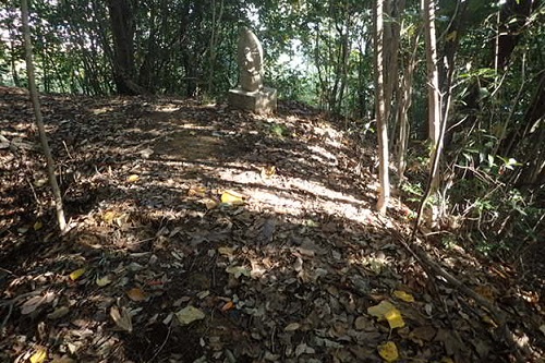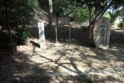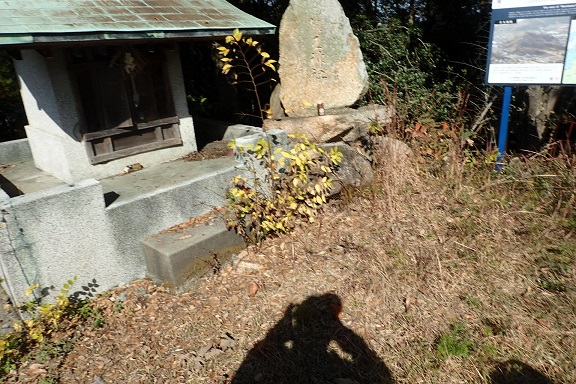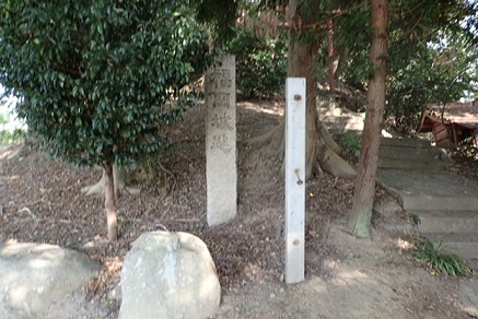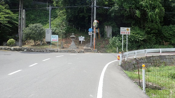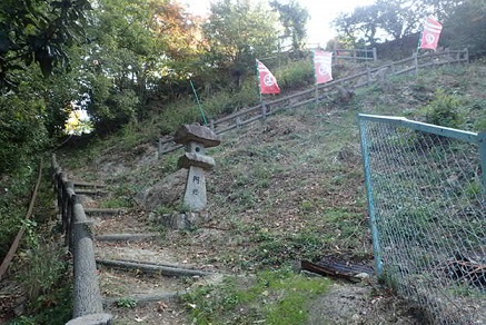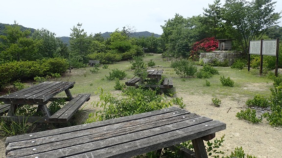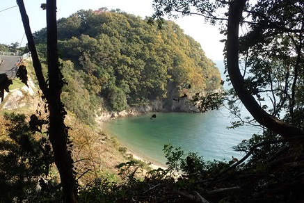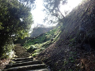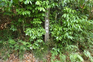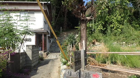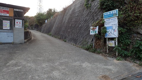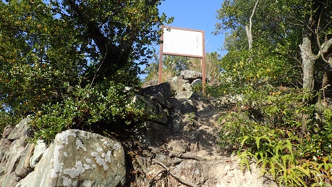 ここへ行くには除虫菊畑の入り口から車で行く方法と海岸沿いを歩き道隆寺へ行く階段を上がると先の道に着くものがある。 まもなく、登り口の案内板を目にする。