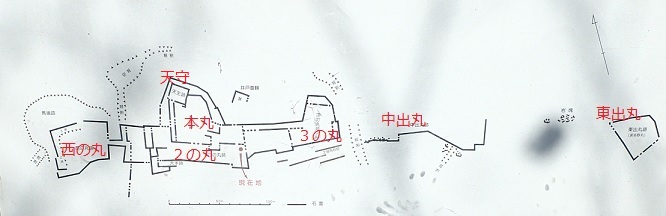 私有地になっているのでやたらなところには立ち入りできず1の郭には2-3層の天守台の跡地があるといいますが、確認できておりません。
