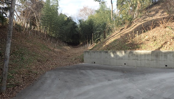 現状では目立たないところに遺跡の小さな表示があるばかりで、現代になってできたさくら堤通りを車で走行すると切通しがあるのみで、気が付かないで過ぎてしまうでしょう。
