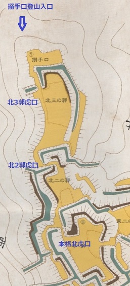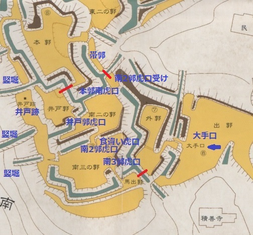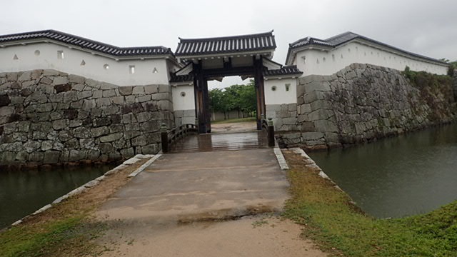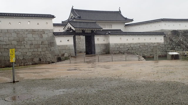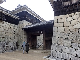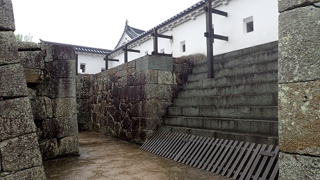 わざわざ木戸門は簡単に破れるようにして攻め方を桝形虎口の中に誘い込み、もう一つの堅牢な大手櫓門でその行き足を止め、高石垣とその両側にある太鼓櫓と中櫓で殲滅すると言う強い防御の作りである。