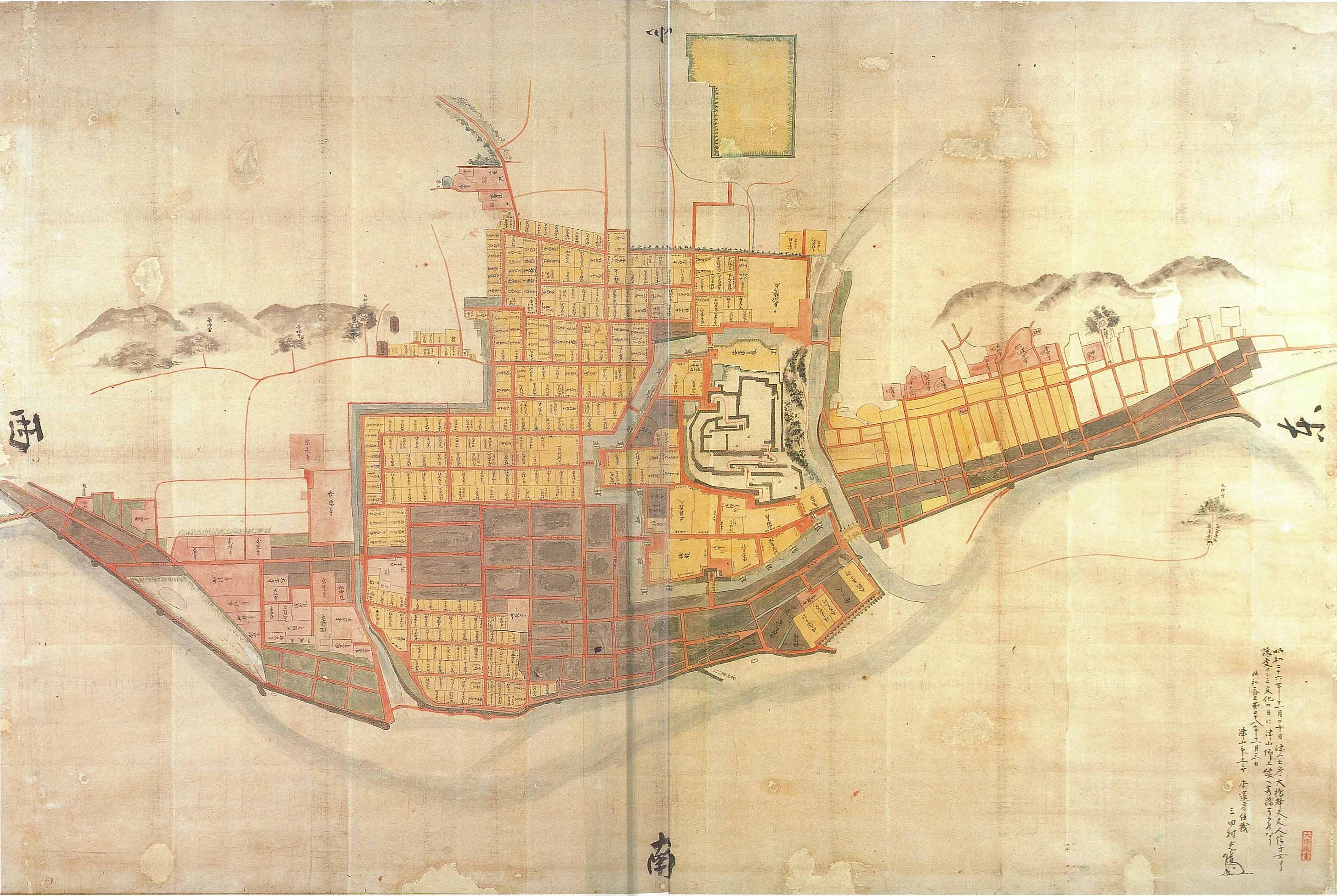 四国の城は海を利用した海城が多いのですが、ここも現在はその面影が少ないけれど古地図にはそのように描かれています。
