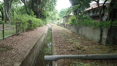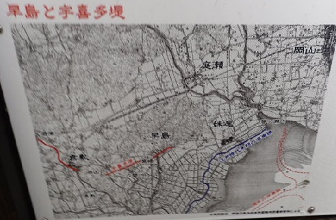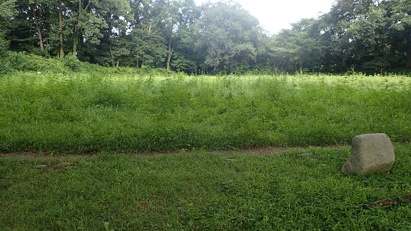 荒川で掘った土を掘に埋めて平坦にしてしまったせいで、注意しないと分かりにくくなりました。西側崖斜面下には古くは荒川の支流和田吉野川があったようですが、ここも河川改修と湿地の埋め戻しで、現在は天神下公園のグランドになっています。東側の湿地は昔のままで、一夜堤も残されています。