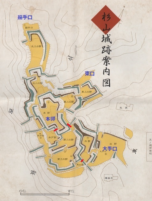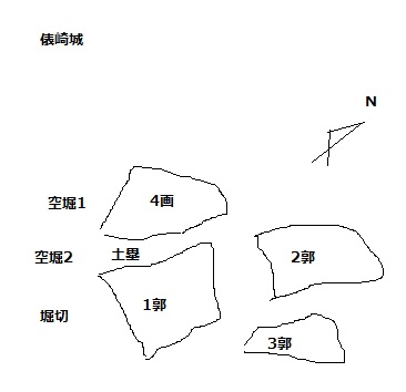 城跡を散策してみますと、近くの松山城や鉢型城のように籠城作戦をとっても数千名の兵士が籠城できるほどのスペースはないようです。 発掘がすすみ南側に大きな構えが見いだされないかぎり、数百名の籠城しかできない面積です。城というよりは砦です。
