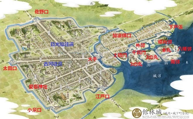 北・東・西の3方を川・湿地に囲まれた要害です。南側からの攻撃しかできないので、南側は大きな堀で守られています。