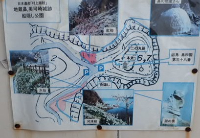 今日の3城訪問はいずれも満足するものではなかった。 因島の観光案内のパンフレットに載っていたものだが、単なる城の位置を示すものだけであったのでしょうか。 観光施設としての整備はされていない。