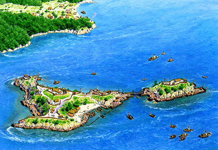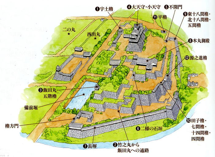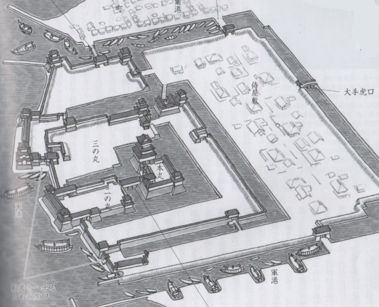 瀬戸内海にある城は海城が多い。宇和島、丸亀、松山城なども、現在は埋め立てられてその面影は薄いけれど、城の一端は海に接していて防備と海への進出を兼ねた海城である。 水軍を指揮して参戦することも多い。