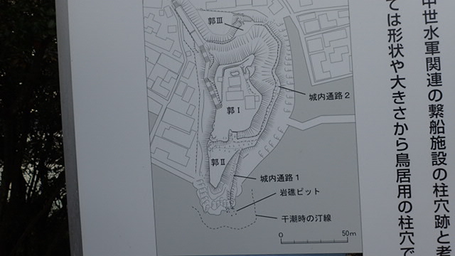 現在は海から離れた土地にあるが、海賊城にふさわしく岬の先の海城である。 瀬戸田は尾道に次ぐ湊町であった。この城主と考えられている生口氏は織田信長と毛利の戦い、第1次木津川口海戦で毛利方の武将です。