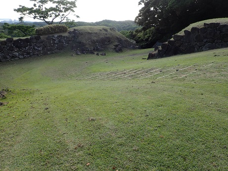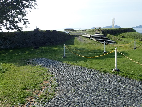 後で知ったのですが、もう一つの経路があり、それは岬の反対側を通るル-トのようで残念だがその時には気が付くことができなかった。 城跡の整備はされていないもよう。