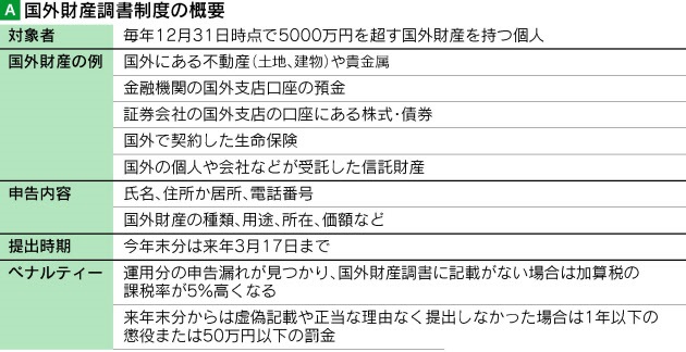 報道では税の申告で、国外に5千万円を超す財産がある人には国外財産調書の申告が義務つけられる。提出期限は来年の3月17日です。