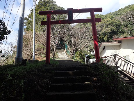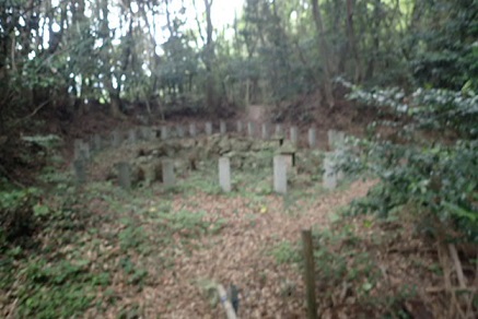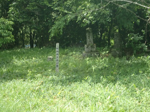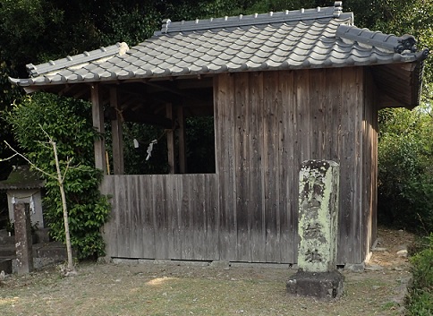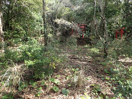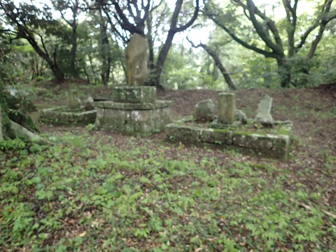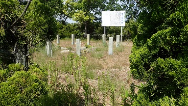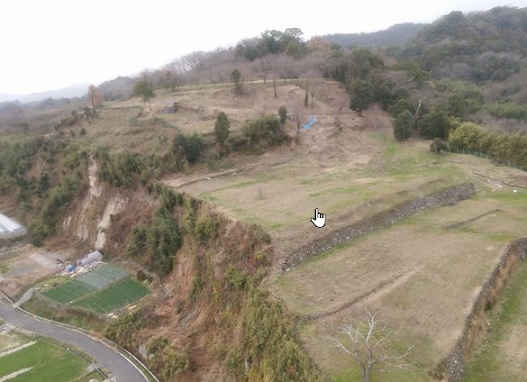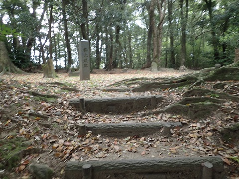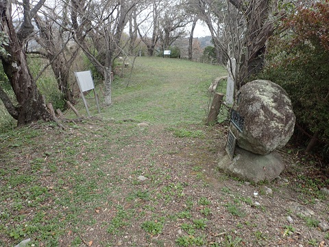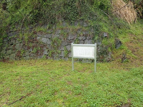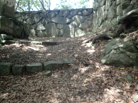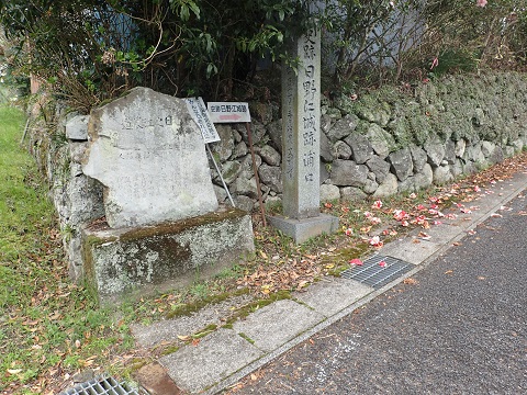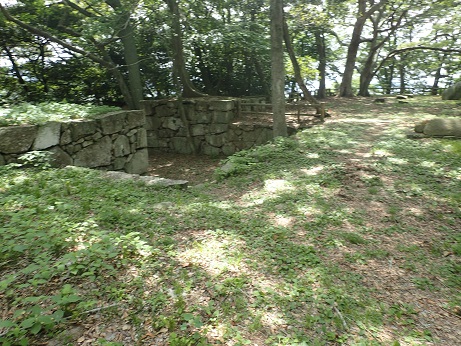 みかん畑の先にお堂があり城跡の石碑があった。 ここが本丸になるのであろうか。 そこへ行くまでに石垣が少し残っていたり掘割みたいなものがあるようですが、開墾されているので正確かどうかは分からない。
