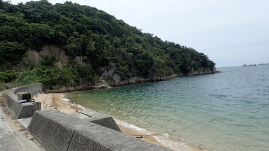 弓削海の駅にヨットを停泊させ, せとうち交流館内の観光協会で自転車を借りて「一の城」へ行く。 上弓削からフェリ-(190円)に自転車を 乗せて因島の家老渡に着いた。 海岸沿いの道を北へ三庄湾方面を走る。 ほどなく登り路になり、下車して違時間ほど登る。 掠浦休憩所で少し休み、その先を少し行くと峠になったのか下りになる。 なかなか案内板がみつからない。 不安になり引き返す。 分岐する交差点があったので今度は反対に登ってみた。