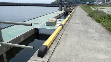 石油施設前の新港工事中の岸壁・ポンツ-ン