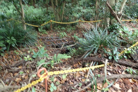 尾根伝いに歩いてゆくと曲輪と曲輪の間には堀切が散見されるのですが、詳しくは分かりません。