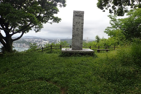 門司城は関門橋の近くにある。和布刈第2展望台を目指して登って行きそこで関門海峡の景色を眺め、さらに少し行くと門司城跡の案内板がある。