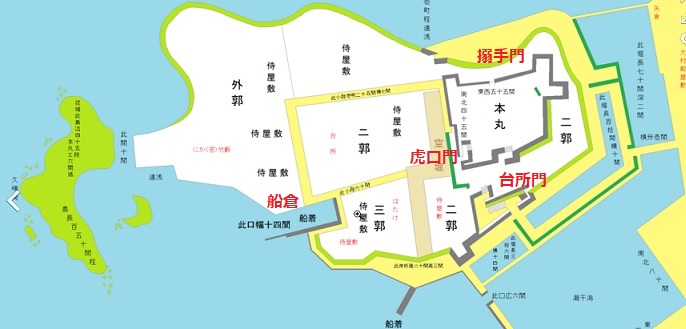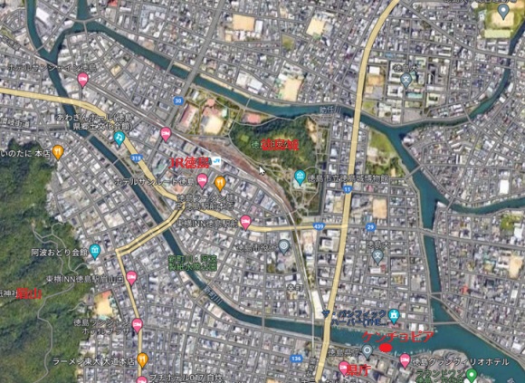 徳島城 周辺図 赤丸は泊地のケンチョピア
