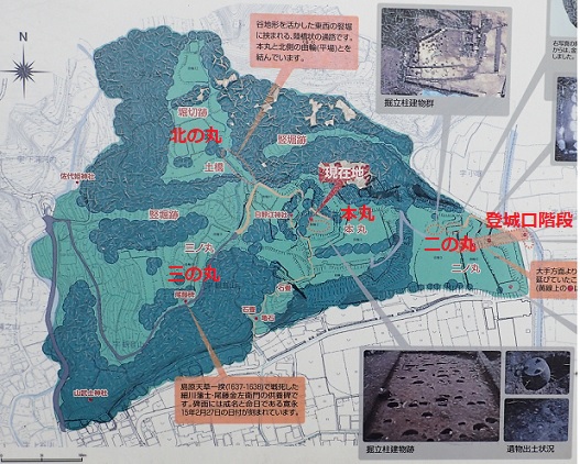 本丸 城山センタの裏から登るところにある 赤い屋根は梵鐘