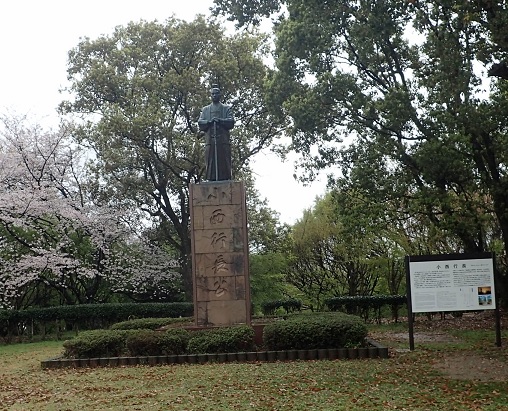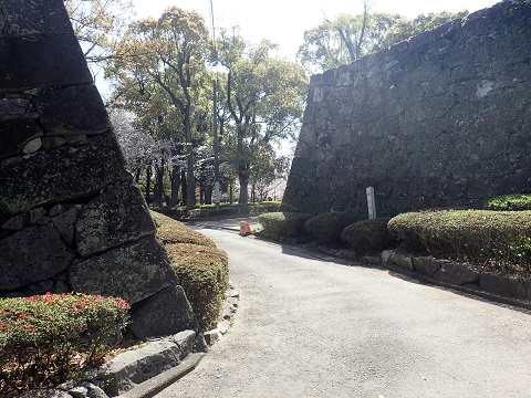 水俣のゲストバ-スよりたくしーにて水俣城へ行く。 上記にあるように石垣や堀が埋められているのでそれらしい雰囲気を感じるのみである。