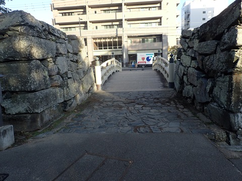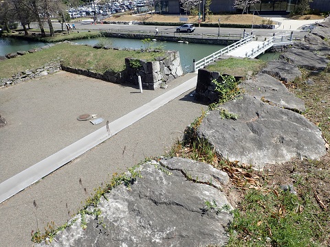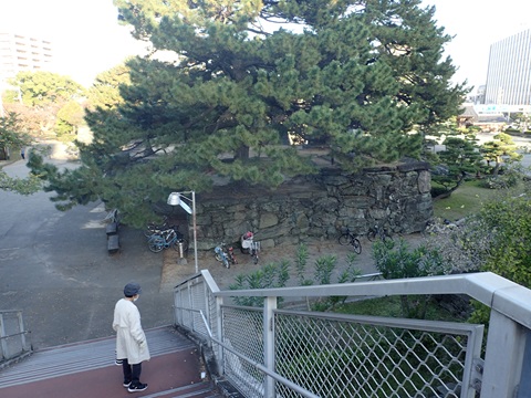徳島駅の線路を挟んで向こう側の公園に徳島市城はある。線路を跨ぐ陸橋を渡ると、もう城内である。